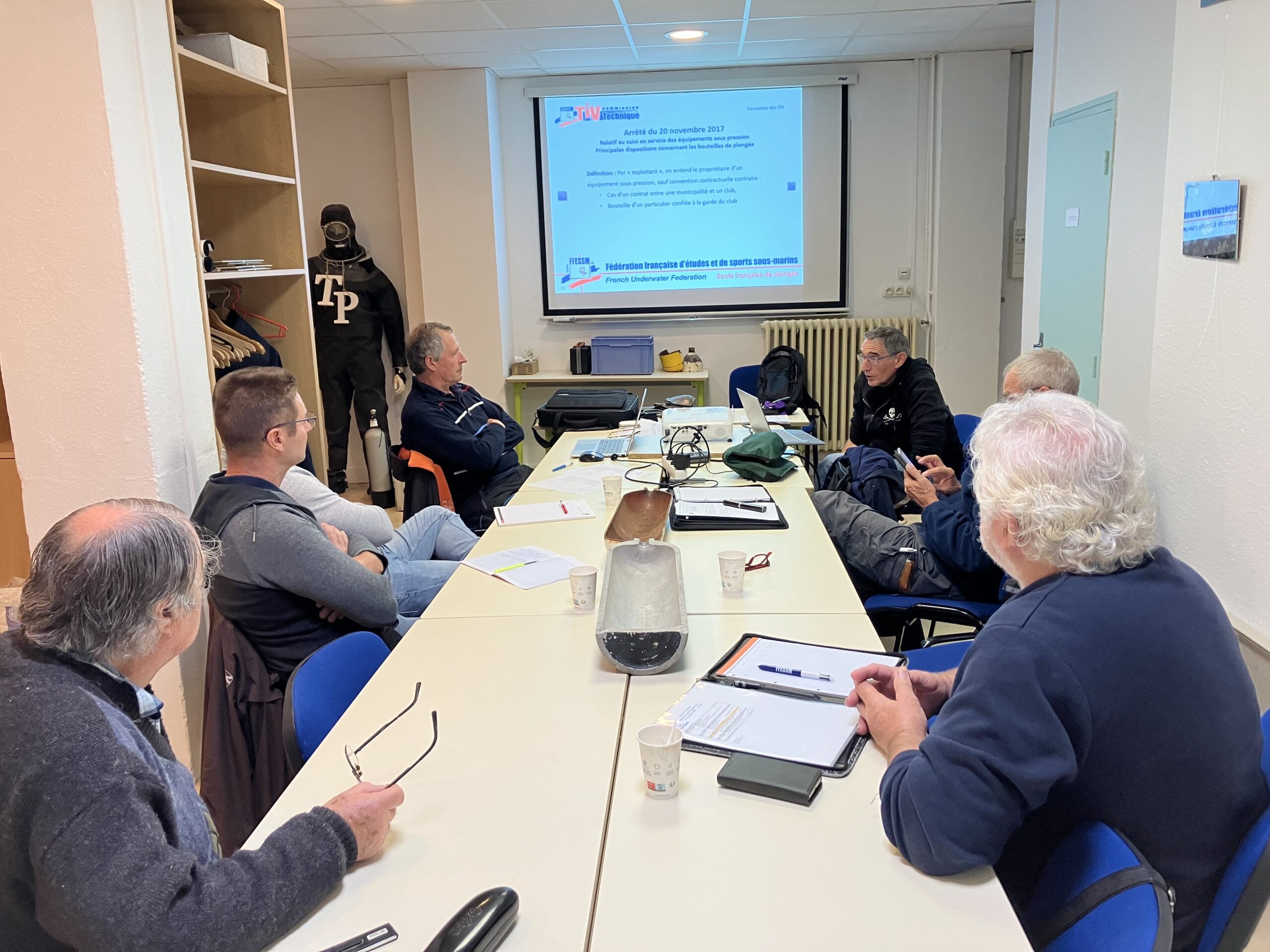 Le recyclage TIV s’est déroulé le 1 novembre de 8h30 à 17h30 entrecoupé par une pause méridienne permettant de se restaurer. Cette formation s’est déroulée dans les locaux mis a disposition par Touraine Plongée, qui a aussi fourni la convivialité sous forme de gâteaux et de boissons chaudes, nous les en remercions chaudement. Le stage a été géré par 2 formateurs TIV du département et suivi par 6 stagiaires (du département 37) qui ont été recyclés avec succès. Les inscriptions au stage sont désormais réalisées via l’application HelloAsso. La journée s’est déroulée dans une ambiance constructive et décontractée. Les apports théoriques, tout comme la pratique, ont été appréciés par les stagiaires.